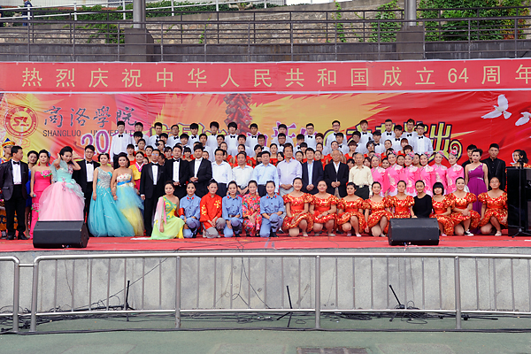 为庆祝新中国第64个生日,迎接2013级新生,9月26日下午,我校举办了“2013庆国庆·迎新生”大型文艺演出。西安音乐学院70余名师生应邀友情出演,和我校师生、商洛剧团青年歌手李淼轮番登台献艺,表演了民乐合奏、歌伴舞、独唱、舞蹈、健身秧歌等19个节目。热烈祥和的气氛、清新高雅的艺术为校园带来了节日的欢乐和文化的盛宴。