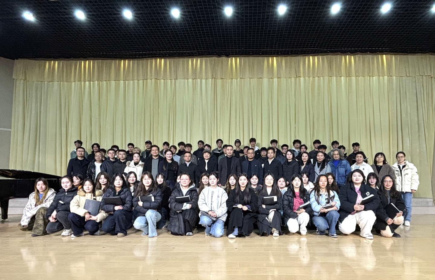 为了进一步推进音乐学专业课程建设、艺术展演、学科建设发展、指导学校公共艺术教育中心美育工作。3月28日,特邀三位省美育工作专家对我校音乐专业合唱排练及艺术展演工作进行指导,艺术学院党委书记廉明、艺术学院副院长(主持工作)唐曌堃及艺术学院师生200余人参加此次活动。此次活动涵盖音乐专业学科建设指导与美育报告交流两个重要环节,通过理论与实践相结合的互动形式,为我校艺术学院音乐学科建设和学校美育工作注入新思路。