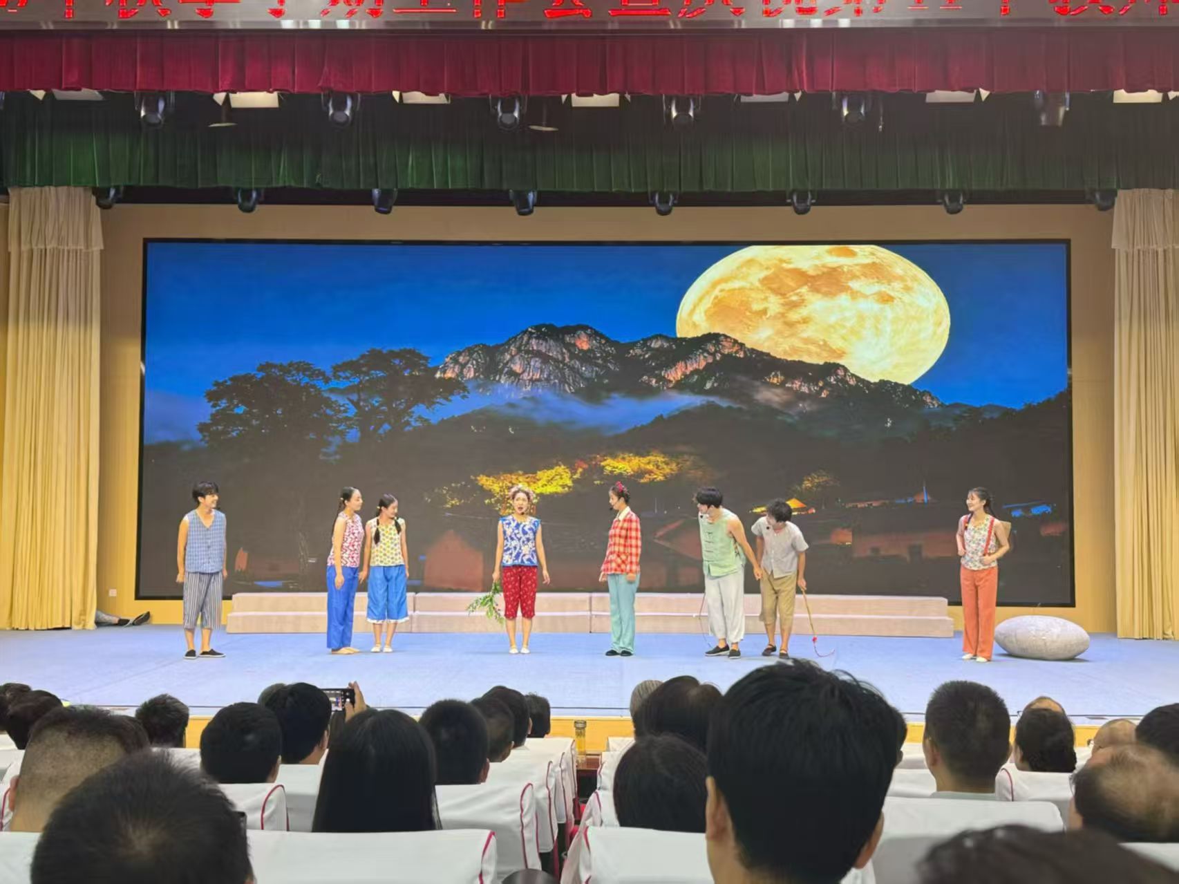 《追赶星星和太阳》选段以富有诗意的唱词和昂扬的旋律,隐喻教师引领学生追寻真理的征程。演出实现了音乐学师生从课堂教学到舞台实践的新突破。音乐系教师李晓龙、张婷、莫飞指导排练,与商洛市戏曲研究院青年演员关玲珑组成教师团队,深入解读剧本内涵,徐海峰、张安心、张弘扬、陈阳阳、刘珮杰、马佳男、肖米兰、夏丽、易铭谣、何旗、张成龙、张成志、宁怡天13名学生不断打磨,理解角色,用“体验”强化自身对非遗文化的认同,也为商洛花鼓培养了新生代传承力量。