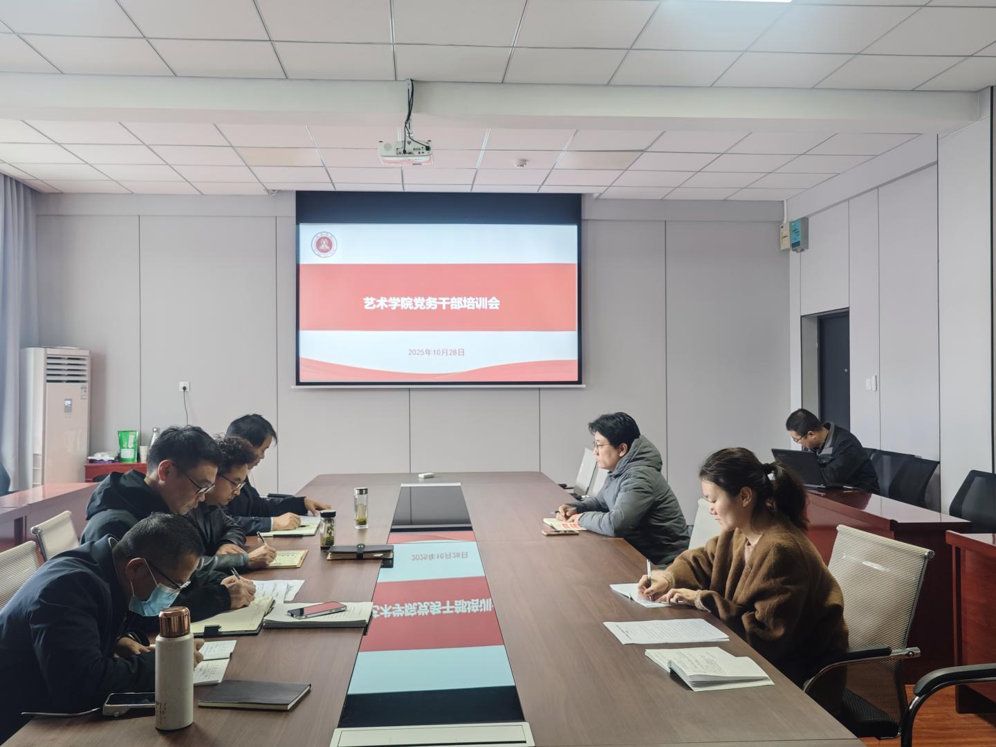 为全面提升基层党务干部履职能力,扎实推进党支部标准化规范化建设,10月28日上午,艺术学院党委在1-506会议室举办全院党务干部业务培训会。学院各党支部全体委员参加培训。本次培训由学院党委书记陈炜主讲。