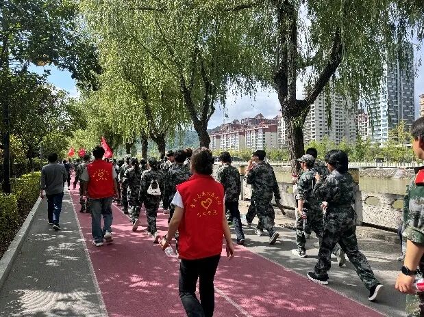 徒步拉练,全面考验学生的意志品质。路途漫漫,秋阳为伴。学院书记与辅导员全程随行,亲切鼓励、关怀备至。同学们并肩前行,无一人轻言放弃。脚步坚定,汗水晶莹,他们以行走丈量毅力,以坚持书写青春,将“不怕苦、不怕累”的信念融入每一次呼吸,更在团队同行中凝聚了向前的一致力量。