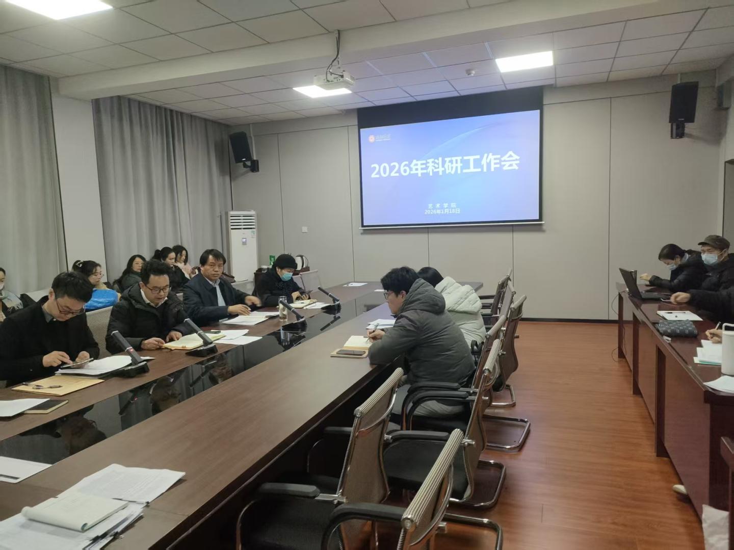 2026年1月18日,艺术学院结合期末工作会议,召开2026年度首次科研工作会,系统部署全年科研任务,扎实推进有组织科研。会议由科研副院长刘志华主持,全体教师参会。